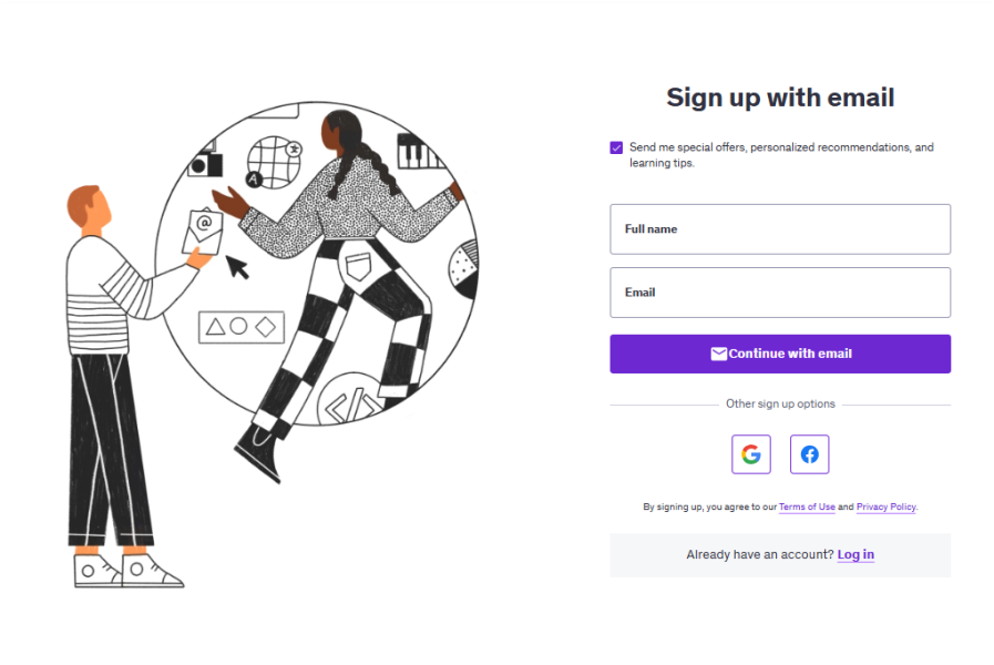 3 – أدخل بريدك الإلكتروني وكلمة المرور لإنشاء حساب جديد، أو قم بتسجيل الدخول باستخدام حساب Google أو Facebook.