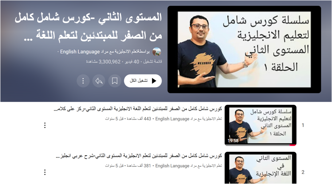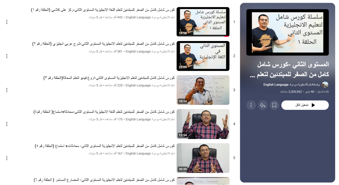 المستوى الثاني من دورة “تعلم الإنجليزية مع مراد” هو مرحلة مهمة لأي شخص جاد في تعلم الإنجليزية من الصفر. الدروس عملية، والشرح بسيط، والتطبيقات واضحة، مما يخليك تتقدم بثبات وتكسر حاجز الخوف من استخدام اللغة.
