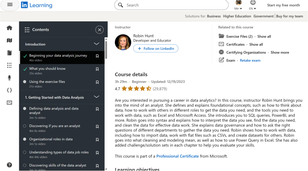 من أبرز المزايا التي ستحصل عليها عند دراسة Learning Data Analytics Foundations على لينكدإن: