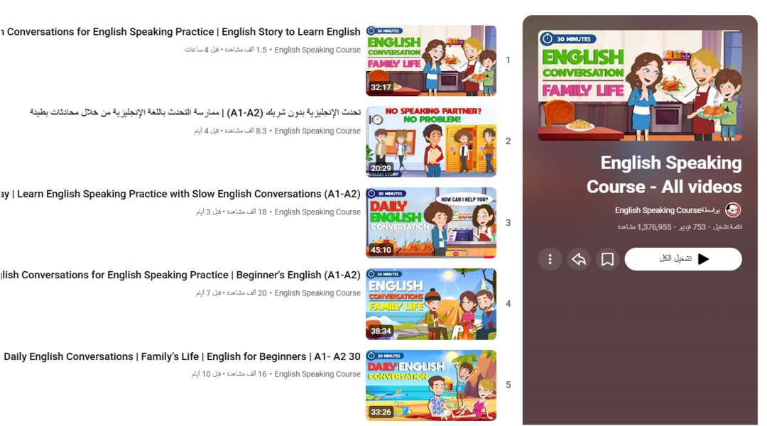 إذا كنت جادًا في تعلم التحدث باللغة الإنجليزية وتريد وسيلة مجانية وسهلة، فابدأ اليوم مع سلسلة English Speaking Course على يوتيوب.