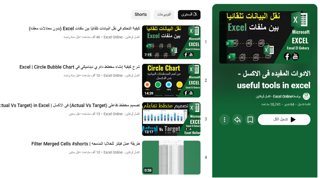 اقرا ايضا : دورة Excel من قناة عالم بهاء الاحترافي – تعلم الجداول والوظائف من الصفر
