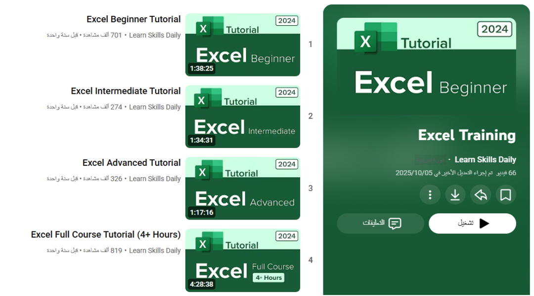 من هذا المنطلق، تقدم قناة Learn Skills Daily على منصة يوتيوب دورة تدريب Excel متكاملة، تهدف إلى نقل المستخدم من مرحلة المعرفة الأساسية إلى مستوى الاحتراف
