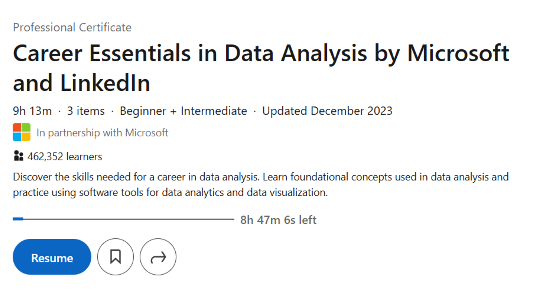 إذا كنت تفكر تبدأ مسار مهني في تحليل البيانات أو تريد تقوية مهاراتك بسرعة، فمسار “أساسيات المهنة في تحليل البيانات” من مايكروسوفت ولينكد إن يعطيك أساس عملي مركّز في أدوات ومفاهيم يحتاجها سوق العمل. المسار قصير نسبياً (حوالي تسع ساعات) ومكوّن من عدة دورات تركز على التفكير التحليلي، تجهيز البيانات، الاستعلامات الأساسية، وبناء تصورات واضحة للنتائج.
