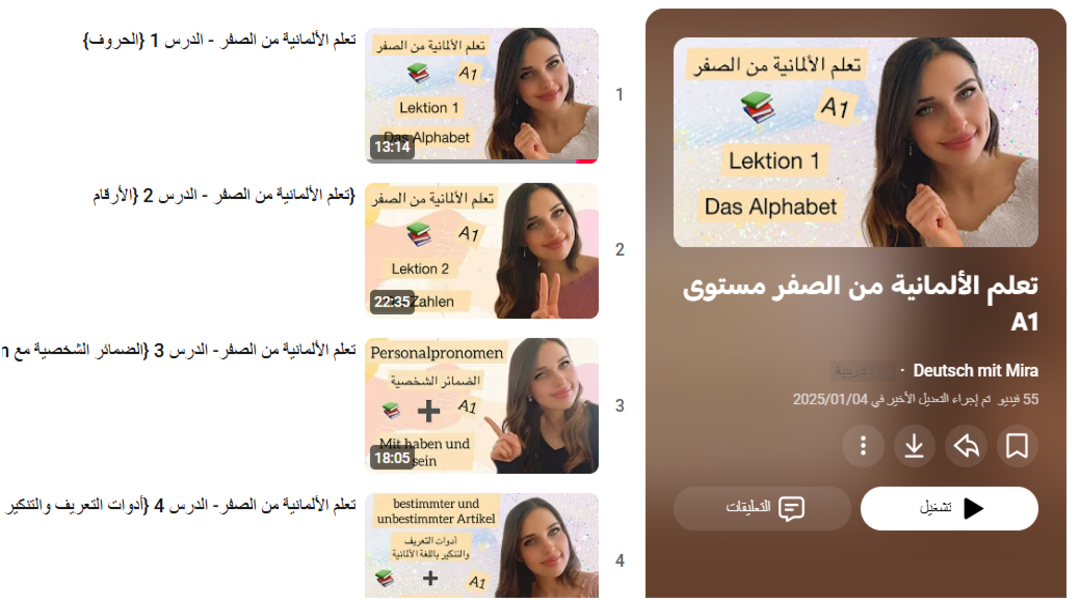 قائمة التشغيل “تعلم الألمانية من الصفر مستوى A1” على يوتيوب