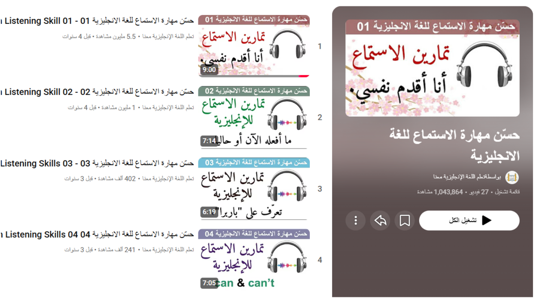 في قائمة التشغيل “حسّن مهارة الاستماع للغة الإنجليزية” تقدّم لك فرصة ممتازة لبناء أساس قوي في الاستماع يساعدك في كل الجوانب الأخرى للغة. ابدأ بمشاهدة الدروس، اتبع التمارين، وكرر الاستماع لنفس المحتوى أكثر من مرة. بهذا الأسلوب المتدرّج ستلاحظ تقدماً حقيقياً في فهمك للغة الإنجليزية.