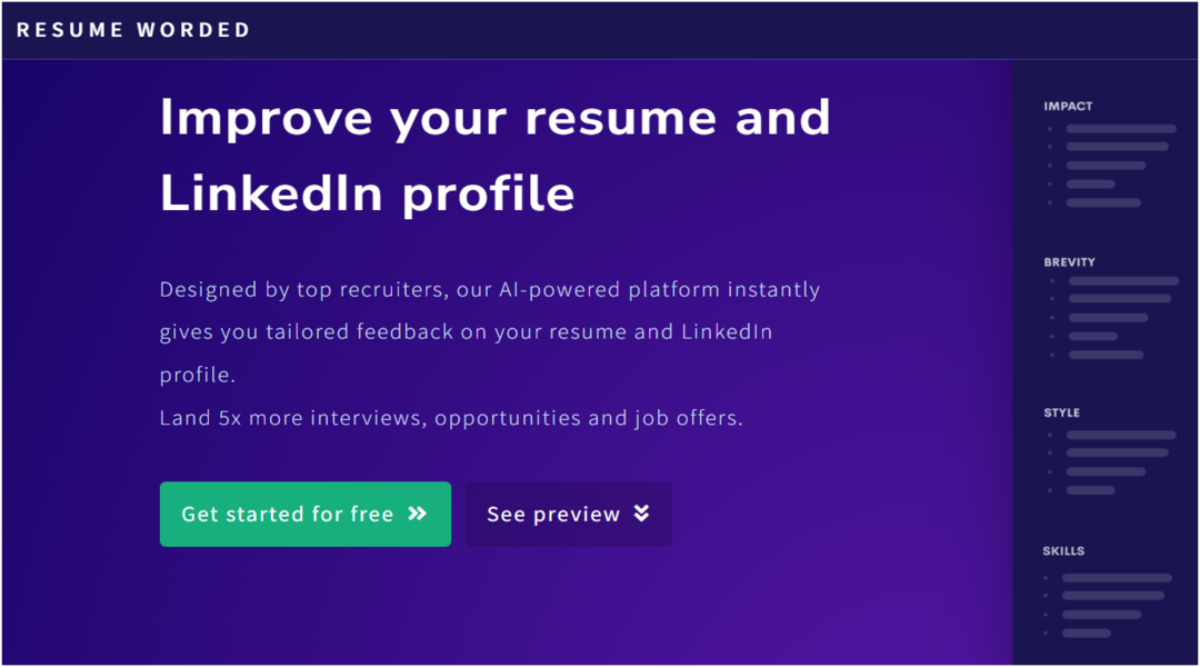 على لينكدإن خطوة استراتيجية لا يمكن تجاهلها. منصّة Resume Worded تقدم لك أدوات ذكية تعتمد على الذكاء الاصطناعي لتحليل سيرتك الذاتية وتقديم ملاحظات فورية تساعدك على جعلها أكثر جذبًا لمسؤولي التوظيف