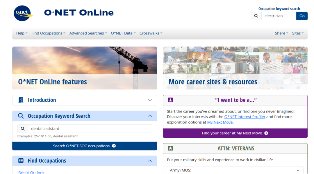 لا يقتصر O*NET Online على البحث بالاسم فقط؛ هناك أدوات متقدمة مثل البحث