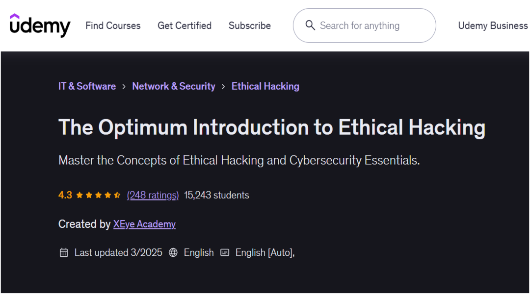 يُعد كورس Introduction to Hacking Udemy واحدًا من الدورات التمهيدية في مجال الأمن السيبراني، ويهدف إلى إعطاء المتعلم فكرة واضحة عن عالم الاختراق الأخلاقي بشكل مبسط ومنظم. الكورس لا يفترض وجود خبرة سابقة، بل يبدأ من الأساسيات ويشرح المفاهيم بطريقة تساعد المبتدئ على فهم الصورة العامة للمجال قبل التعمق فيه.