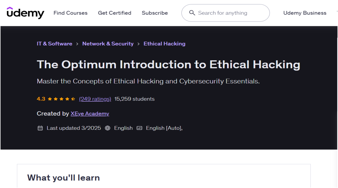 إذا كنت تفكر في دخول مجال الأمن السيبراني، فإن كورس تعلم الهكر الأخلاقي من الصفر يُعد من أفضل الخيارات المتاحة للمبتدئين على منصة Udemy. هذا النوع من الكورسات يهدف إلى تعليمك كيفية التفكير مثل المخترقين، ولكن بطريقة قانونية وأخلاقية، بهدف حماية الأنظمة وليس اختراقها.