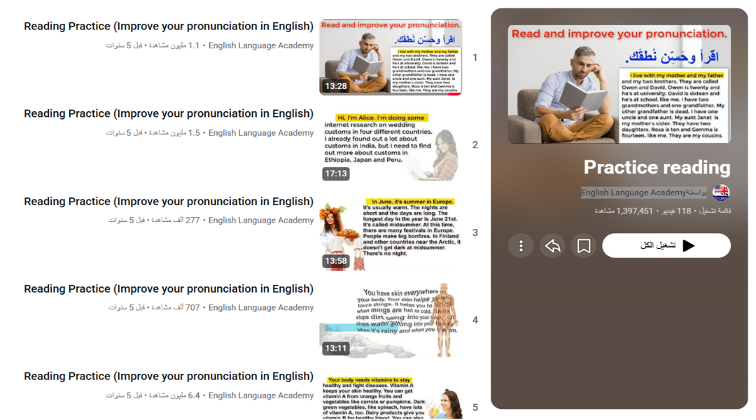 تُعد سلسلة Practice reading من أقوى الطرق العملية لتطوير مهارة القراءة في اللغة الإنجليزية، خاصة للمبتدئين والمتوسطين. تعتمد هذه السلسلة على الدمج بين القراءة والاستماع، وهو ما يجعل المتعلم يكتسب النطق الصحيح إلى جانب فهم النصوص بسهولة. ومن خلال المحتوى الذي تقدمه قناة English Language Academy، يمكن لأي شخص تحسين مستواه تدريجيًا بدون تعقيد.