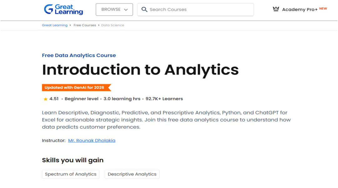 كورس Introduction to Analytics من منصة Great Learning
